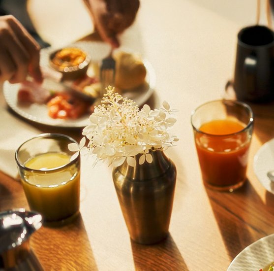 Wenn Sie unser Gast sind, werden Sie nach einer erholsamen Nacht in den Genuss unseres Frühstücksbuffets kommen. Unser Küchenchef Sebastian Golle versammelt die feinsten Zutaten der Region – auch eine vegane Auswahl. Schluss ist erst um 11 Uhr. Da können Sie sich Zeit lassen.