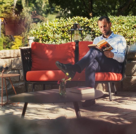 Ein Schritt hinaus – und schon mitten im Grünen: The Great One hat eine einzigartige Terrasse, auf der man Vögel zwitschern und Wasser plätschern hört. Perfekt für kreative Pausen oder einfach einen Moment Ruhe. Let’s go outside!